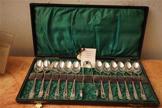 Scatola originale portacucchiaini e pinza per zollette in old sheffield.. Periodo Edwardiano, Inghilterra primi 900' Offerta speciale: 220,00 Euro anzichè 430,00