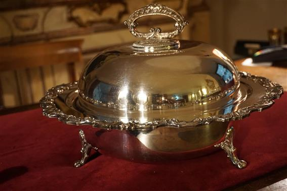 Centro tavola tondo con coperchio old sheffield, Periodo Vittoriano. Inghilterra. Offerta speciale: 1500,00 Euro anziché 3000,00 Euro