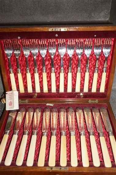 Set posate in sheffield con decori e manico in osso. Periodo Vittoriano. Offerta speciale: 160,00 Euro anziché 260,00 Euro