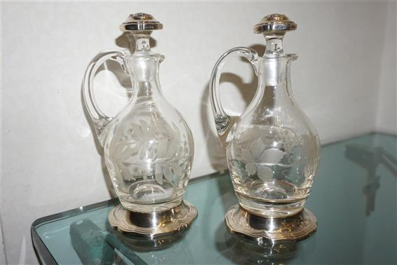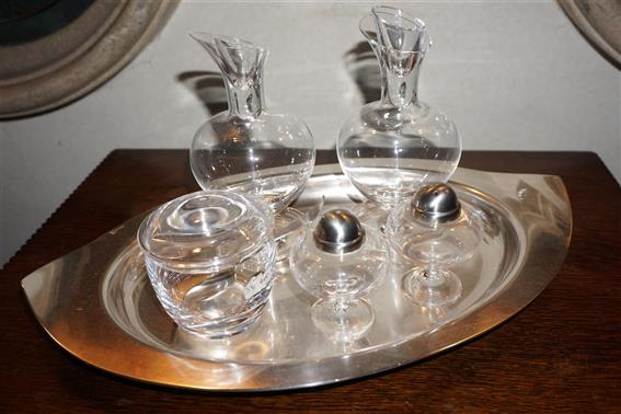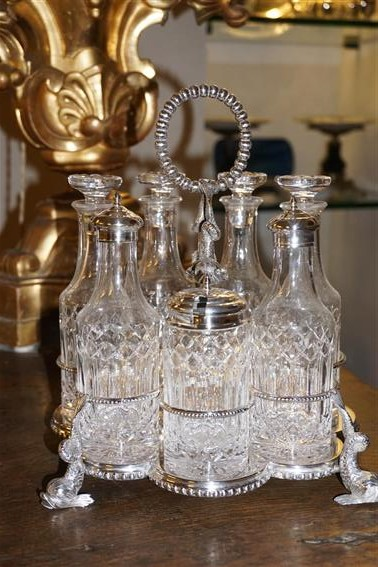 Set di bottiglie per liquori e bicchieri in sheffield inglese e cristallo molato. Offerta speciale: 1000,00 Euro anziché 2000,00 Euro