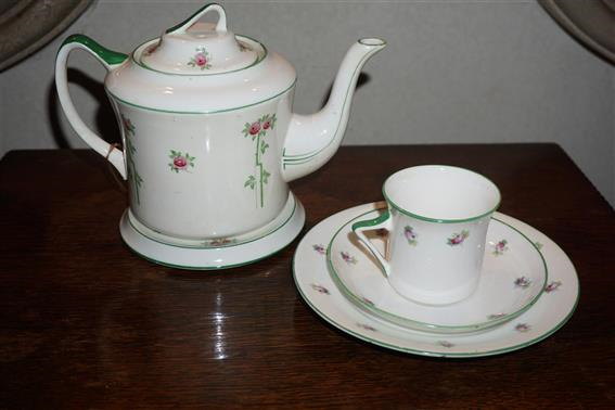 Teiera e relativo piatto in pregiata porcellana di Limoges decorata con oro zecchino.. Periodo 1893, Francia. Offerta speciale: 400,00 Euro anzichè 900,00 Euro