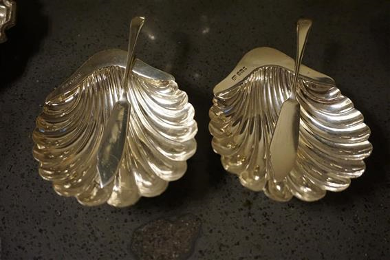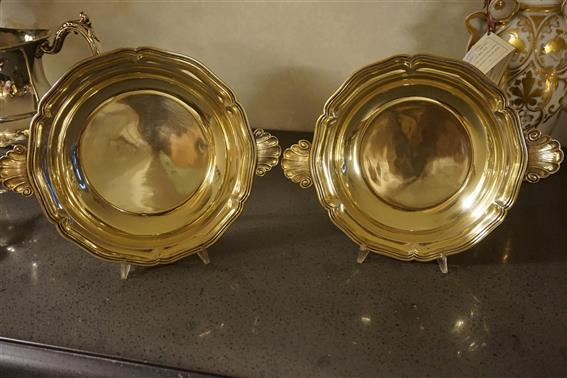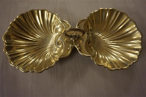 Coppia di centro tavola tondi con manici a forma di conchiglia in old sheffield. Francia 1800.Offerta speciale: 1900,00 Euro anziché 3800,00 Euro