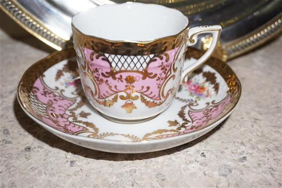 Coppia tazze con piatti in porcellana decorata. Offerta speciale: 70,00 Euro anzichè 150,00 Euro