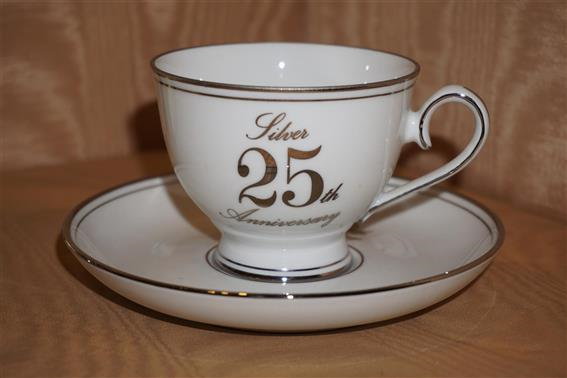 Tazza con piattino in porcellana e argento 925% per i 25 anni di matrimonio. Offerta speciale: 80,00 Euro anziché 140,00 Euro