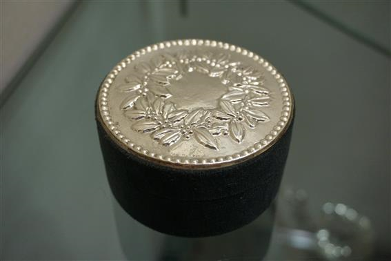 Cofanetto tondo per manicure con copertura in argento 925%. Offerta speciale: 95,00 Euro anziché 150,00 Euro