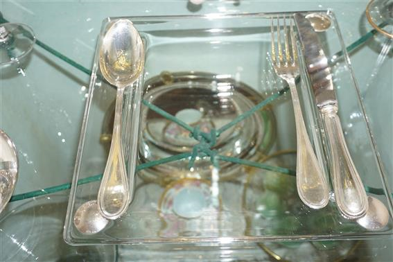 Sottopiatto quadrato in cristallo e argento 925% più posate in argento 800%. Offerta speciale: 350,00 Euro anziché 550,00 Euro